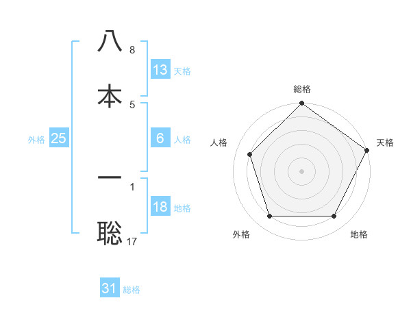 八本 一聡さんの総格は31画の5点!