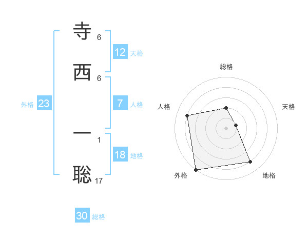 寺西 一聡さんの総格は30画の2点!