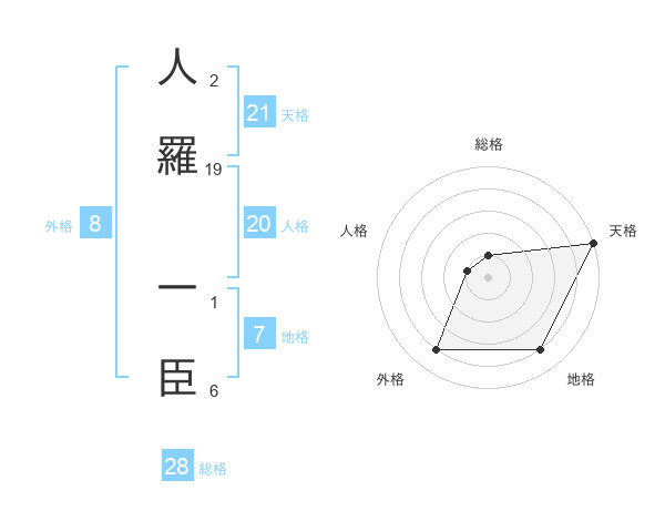 人羅 一臣さんを姓名の画数から五運を鑑定