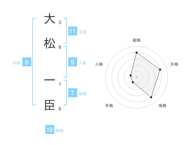 大松 一臣さんの総格は18画の4点!