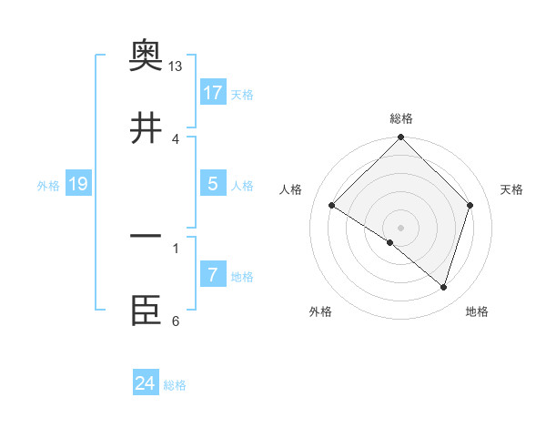 奥井 一臣さんの天格は17画の4点!