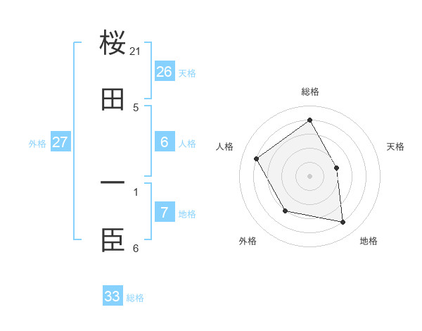 桜田 一臣さんを姓名の画数から五運を鑑定