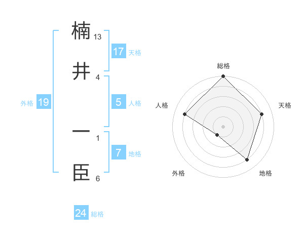 楠井 一臣さんを姓名の画数から五運を鑑定