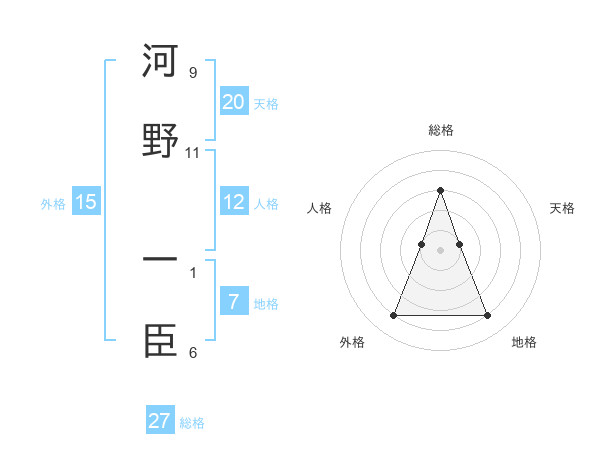 河野 一臣さんの総格は27画の3点!