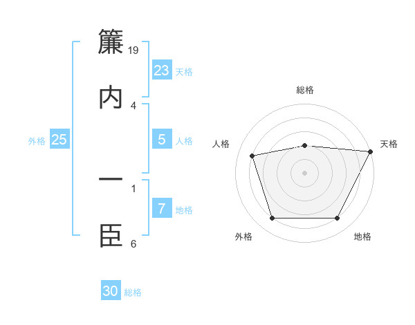 簾内 一臣さんを姓名の画数から五運を鑑定