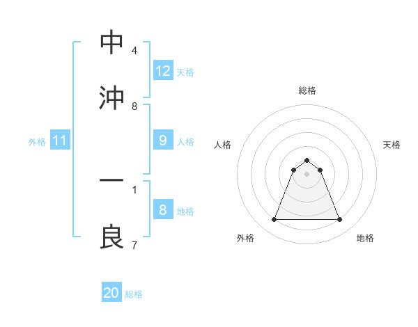 中沖 一良さんの総格は20画の1点!