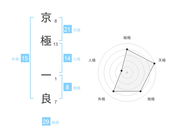 京極 一良さんの総格は29画の4点!
