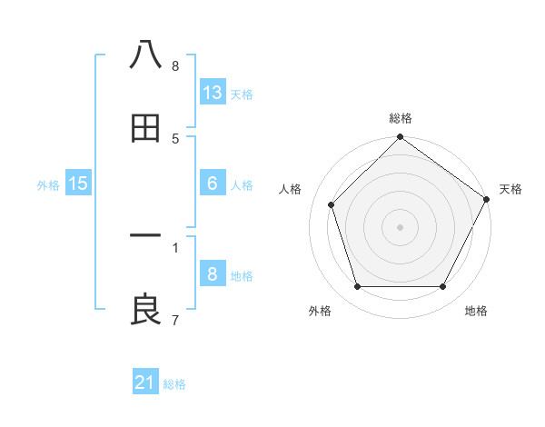 八田 一良さんの総格は21画の5点!