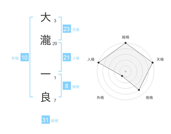 大瀧 一良さんを姓名の画数から五運を鑑定