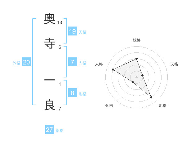 奥寺 一良さんの天格は19画の1点!