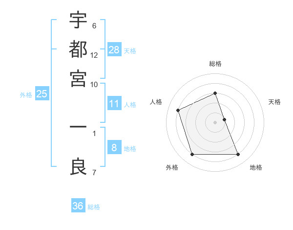 宇都宮 一良さんを姓名の画数から五運を鑑定