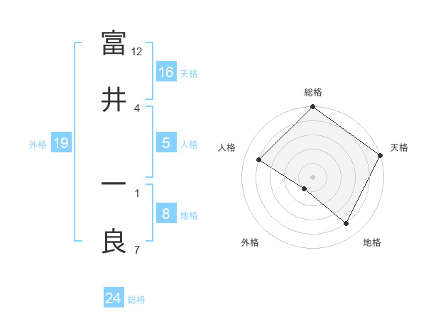 富井 一良さんを姓名の画数から五運を鑑定
