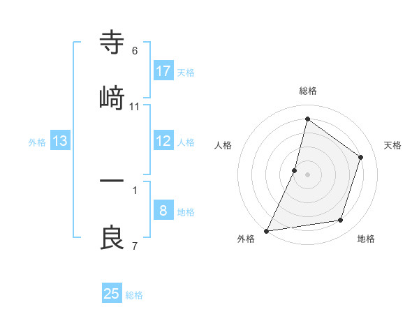 寺﨑 一良さんの総格は25画の4点!