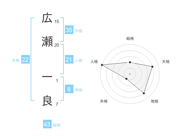 広瀬 一良さんの総格は43画の2点!
