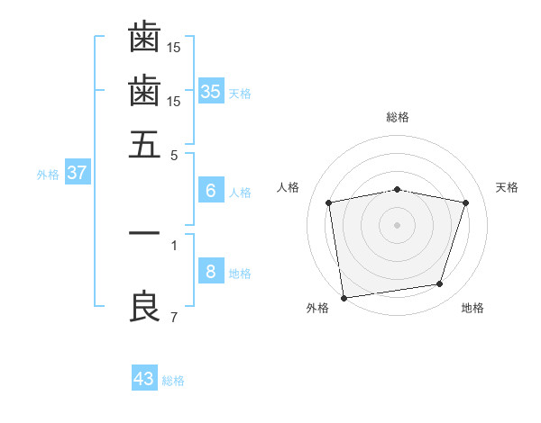 歯歯五 一良さんの外格は37画の5点!