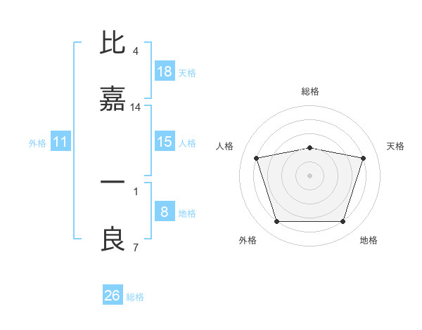 比嘉 一良さんを姓名の画数から五運を鑑定