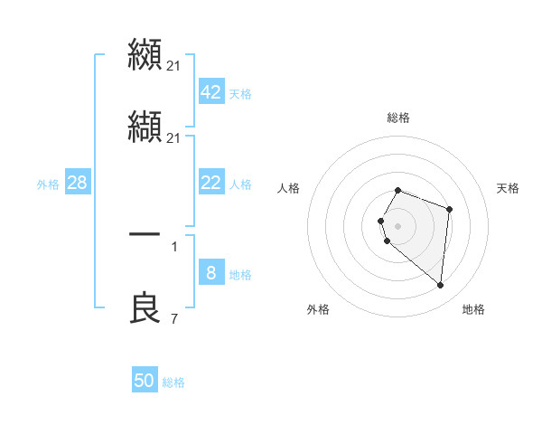 纐纈 一良さんの総格は50画の2点!
