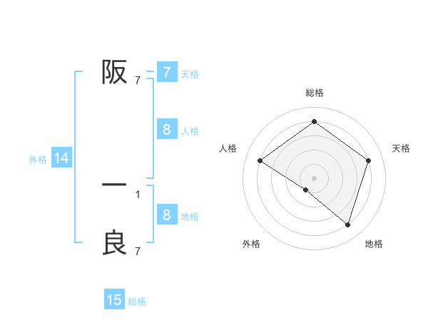 阪 一良さんの総格は15画の4点!