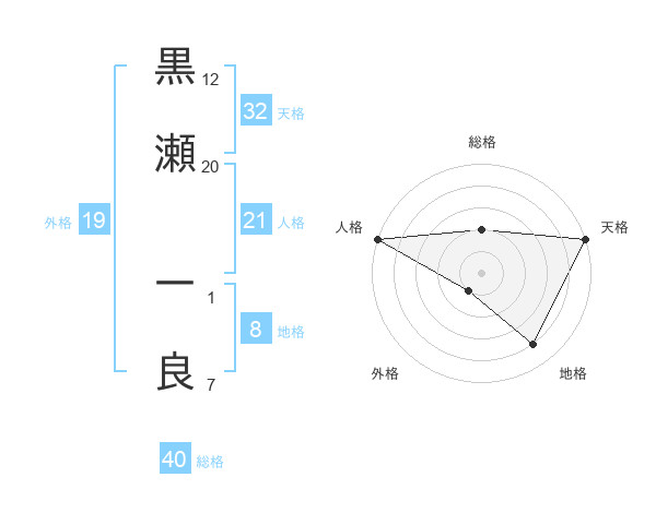 黒瀬 一良さんの天格は32画の5点!