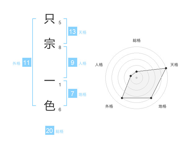 只宗 一色さんの総格は20画の1点!