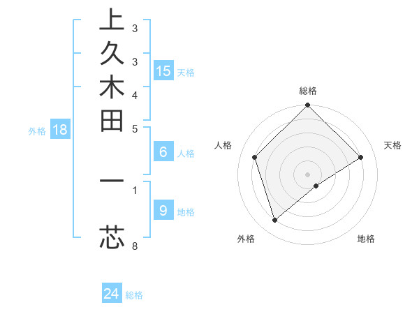 上久木田 一芯さんを姓名の画数から五運を鑑定