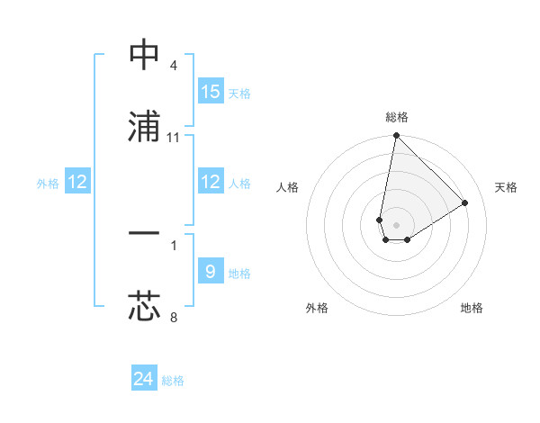 中浦 一芯さんを姓名の画数から五運を鑑定