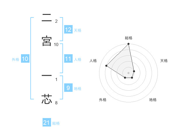 二宮 一芯さんを姓名の画数から五運を鑑定