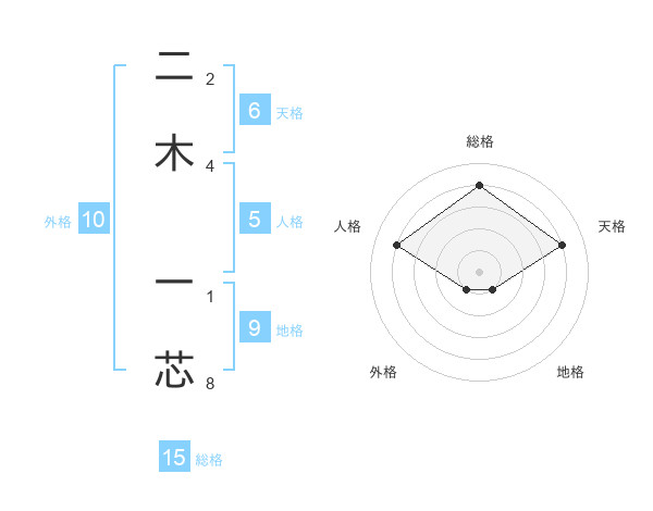 二木 一芯さんの総格は15画の4点!