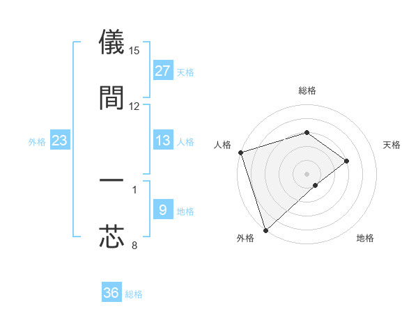 儀間 一芯さんを姓名の画数から五運を鑑定