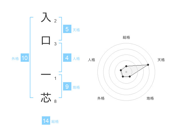 入口 一芯さんの総格は14画の1点!