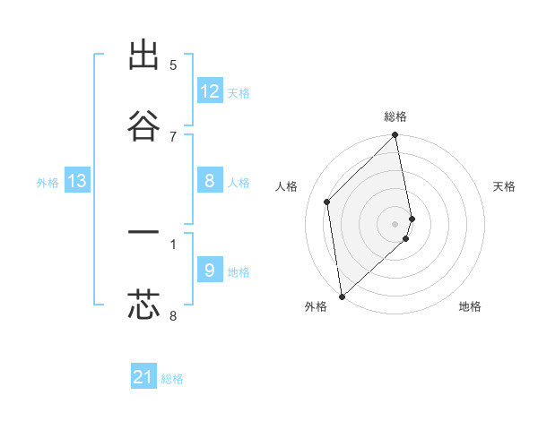 出谷 一芯さんの外格は13画の5点!