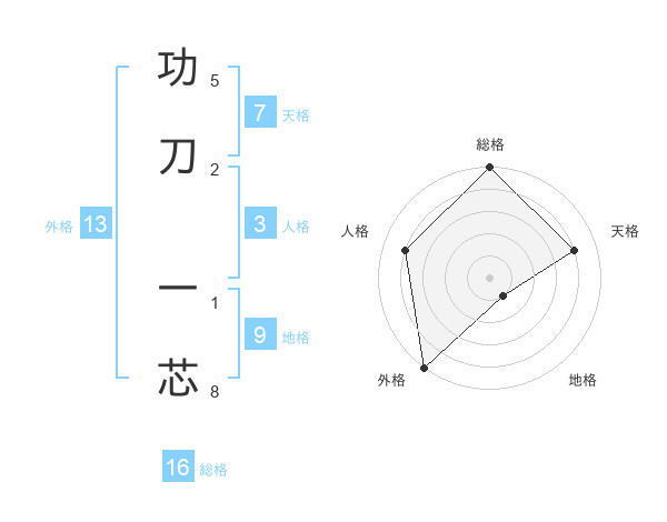 功刀 一芯さんの総格は16画の5点!