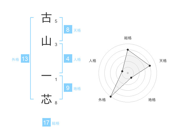 古山 一芯さんの総格は17画の4点!