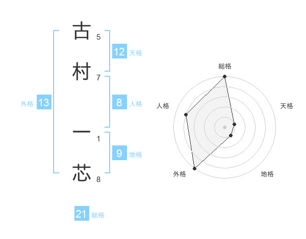 古村 一芯さんの外格は13画の5点!