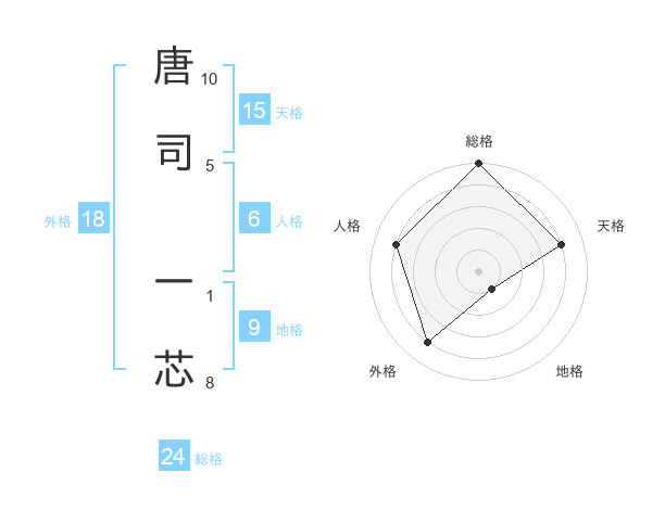 唐司 一芯さんの総格は24画の5点!