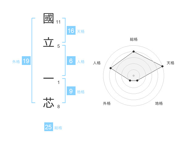 國立 一芯さんの天格は16画の5点!