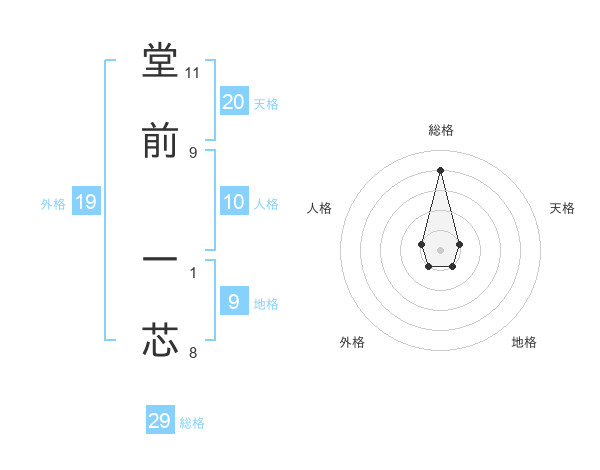 堂前 一芯さんの総格は29画の4点!