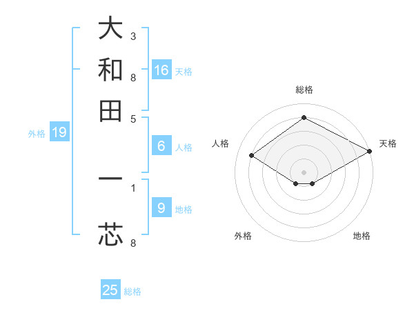 大和田 一芯さんの総格は25画の4点!