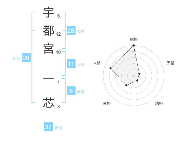 宇都宮 一芯さんを姓名の画数から五運を鑑定
