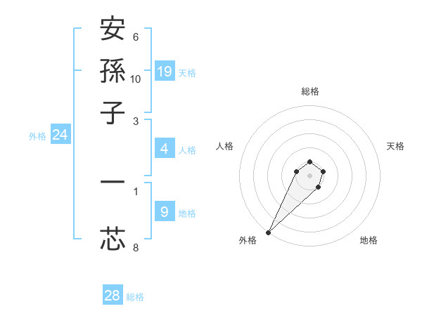 安孫子 一芯さんを姓名の画数から五運を鑑定