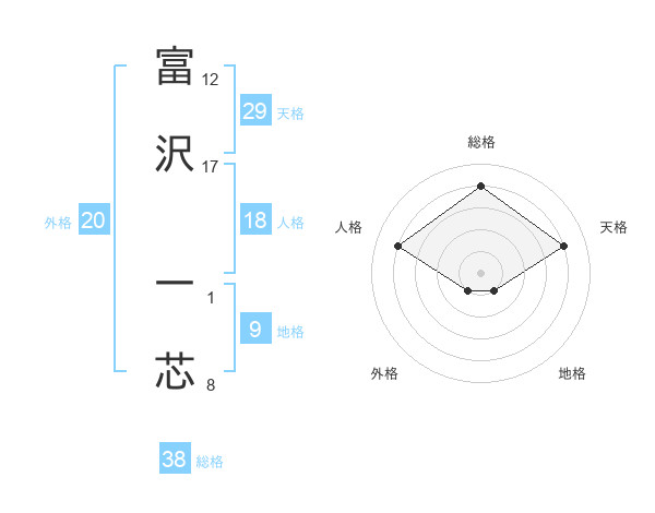 富沢 一芯さんを姓名の画数から五運を鑑定