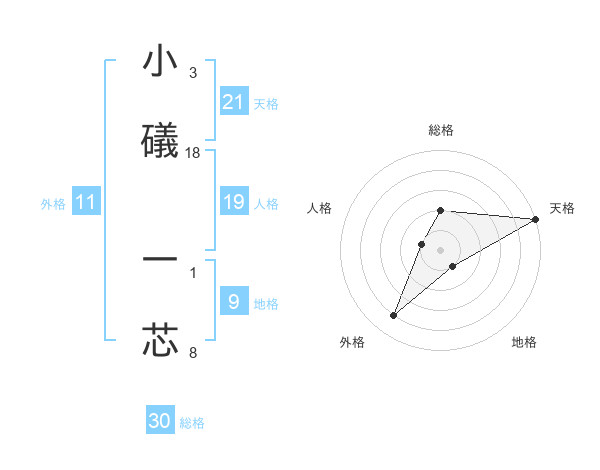 小礒 一芯さんの天格は21画の5点!