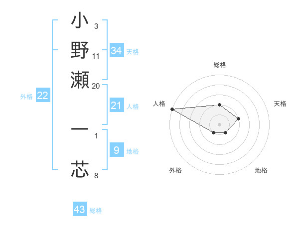小野瀬 一芯さんを姓名の画数から五運を鑑定