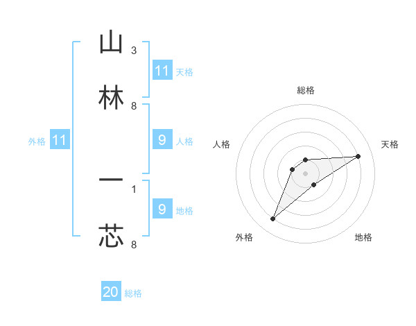 山林 一芯さんの総格は20画の1点!