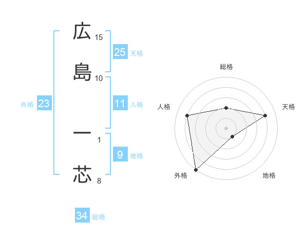 広島 一芯さんの天格は25画の4点!