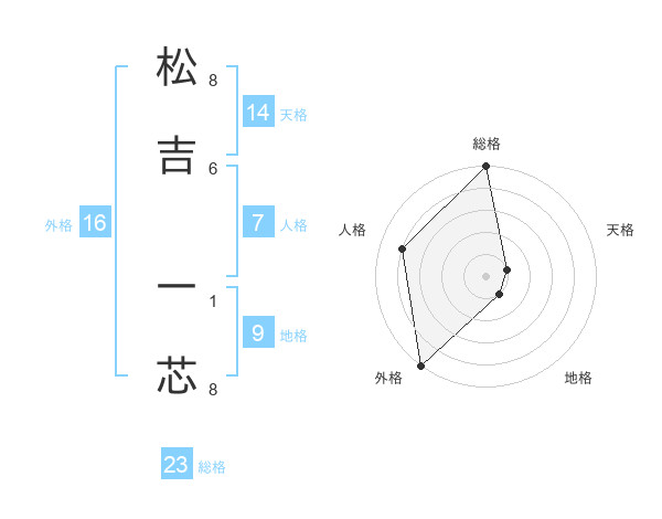 松吉 一芯さんの外格は16画の5点!