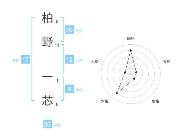柏野 一芯さんの総格は29画の4点!
