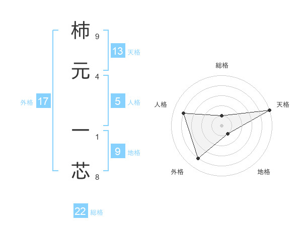 柿元 一芯さんの天格は13画の5点!
