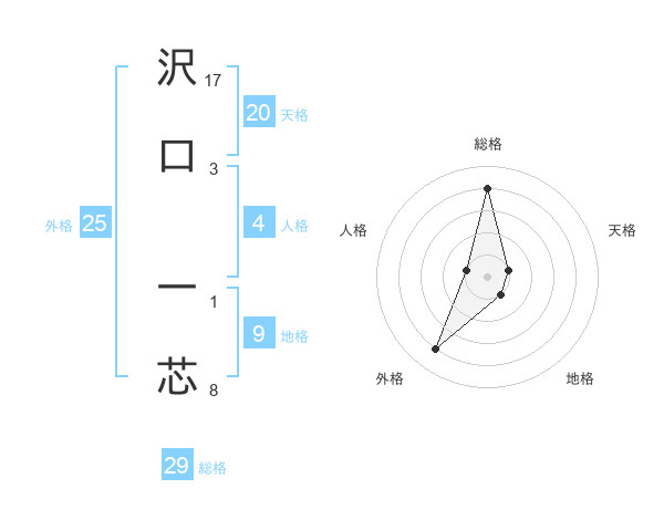 沢口 一芯さんを姓名の画数から五運を鑑定