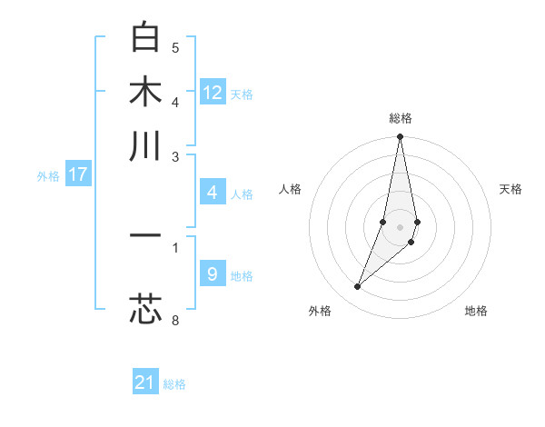 白木川 一芯さんを姓名の画数から五運を鑑定
